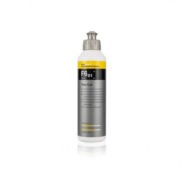 Uusima põlvkonna arukas masina poleerimine, millel on ainulaadne alumiiniumoksiidi kvaliteet. tagab pesusüsteemi kriimustuste ja sarnaste kasutusjälgede väga kiire ja täieliku eemaldamise ning annab värvima pikaajaline sügav läige. 2500 klassi lihvimisvahendi poolt maha jäetud lihvimisjäljed eemaldatakse vaevata. Fine Cut F6.01 sobib seetõttu ideaalselt keskmise kuni raske täiuslikuks taastamiseks ilmastikumaal. Täiuslikult koordineeritud kriimustuskindla värvi töötlemiseks.